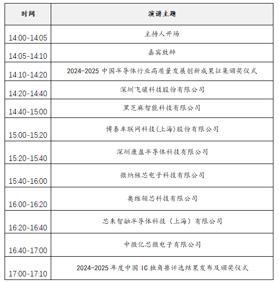 活動(dòng)同期還將進(jìn)行“2025年度中國(guó)IC獨(dú)角獸和中國(guó)半導(dǎo)體行業(yè)高質(zhì)量發(fā)展創(chuàng)新成果征集”的評(píng)選頒獎(jiǎng)典禮,屆時(shí)會(huì)對(duì)獲評(píng)的企業(yè)代表頒發(fā)證書(shū),并公布獲獎(jiǎng)名單。