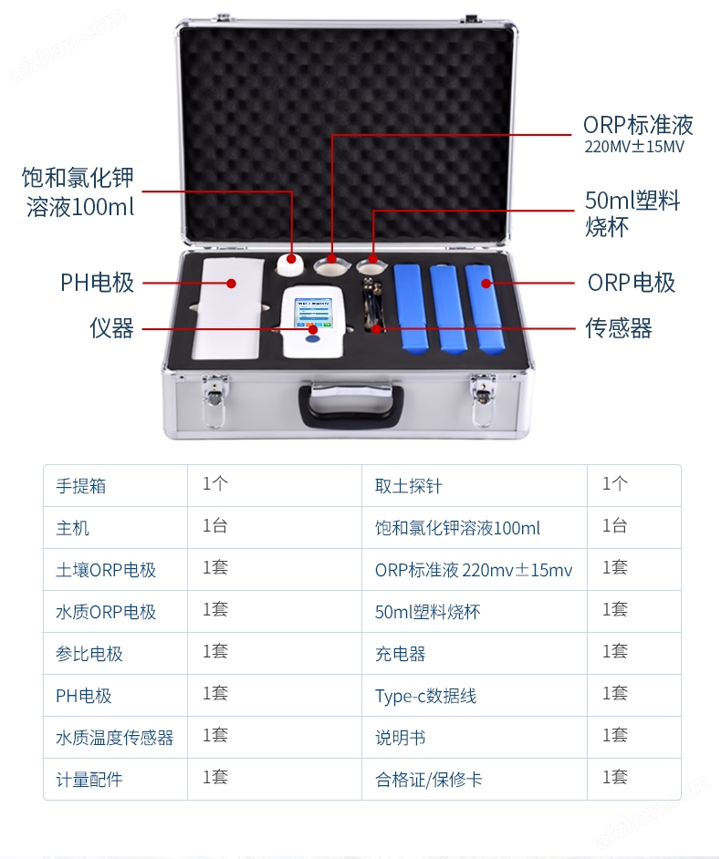 5、配套專用ORP電極、參比電極和不銹鋼空心杄,可直接插入土壤;