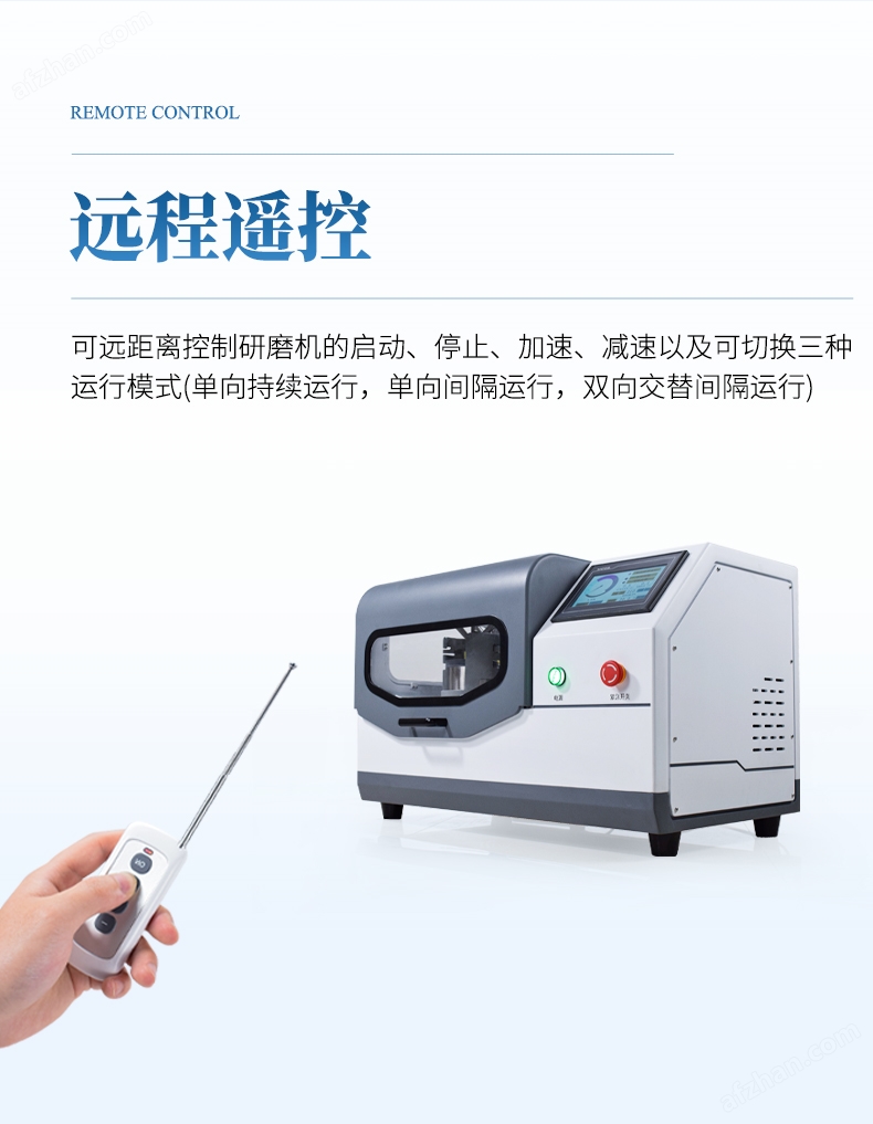 6.可遠(yuǎn)程遙控:標(biāo)配無(wú)線遙控器,可遠(yuǎn)距離控制研磨機(jī)的啟動(dòng)、停止、加速、減速以及切換三種運(yùn)行模式