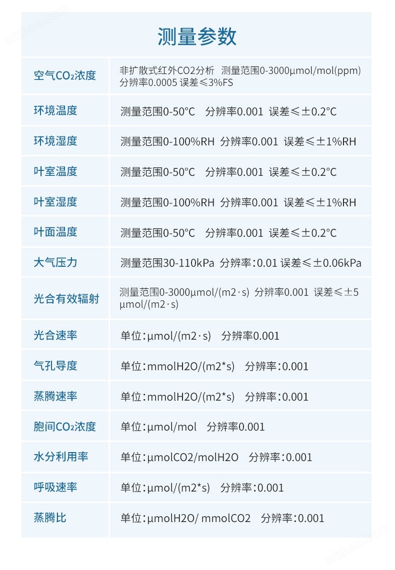 光合速率(Pn):單位μmol/(m2·s) 分辨率0.001